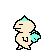 Puck from Berserk, a charming pixel art character, waddling and walking with its distinctive light blue features.