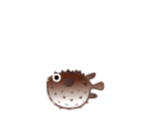A cute animated puffer fish blinks its eye and subtly inflates, showing its spiky defense mechanism.