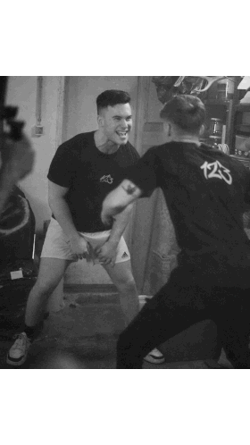 two men are standing next to each other and one of them is wearing a shirt that says 123 on the back