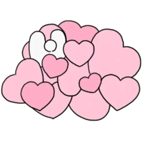 A cute, shy, white blob character with a wide smile, expressing deep affection and a pulsating heartbeat of love.