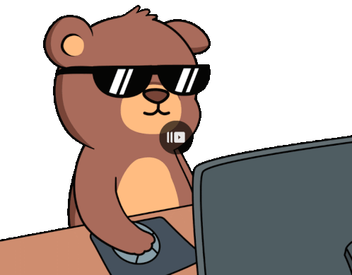 a cartoon of a teddy bear wearing sunglasses using a computer mouse