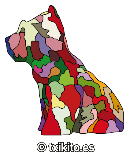 a colorful drawing of a dog with the watermark txakito.es