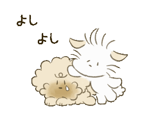 a cartoon drawing of a cat and a sheep with chinese writing on the bottom