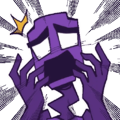 a purple cartoon character with a surprised look on his face and a yellow star on his head .
