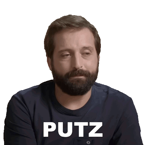 a man with a beard is wearing a blue shirt with the word putz written on it