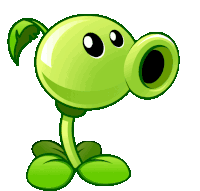 An animated Peashooter from Plants vs. Zombies, a green plant character with a large mouth.