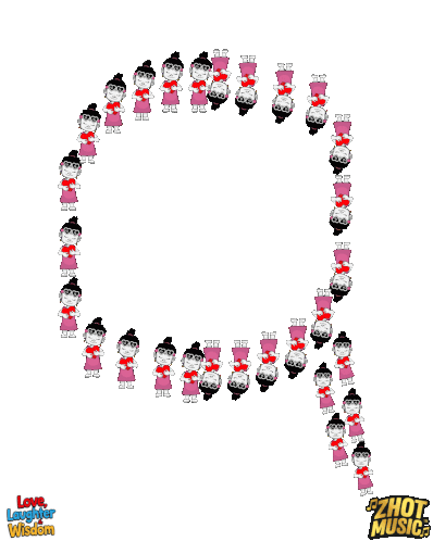the letter r is made up of cartoon characters and the words love laughter wisdom are below it
