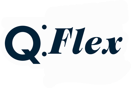 Animated logo for Q.Flex Etiquetas, revealing the slogan 'Qualidade é na Q.Flex Etiquetas' (Quality is at Q.Flex Labels).