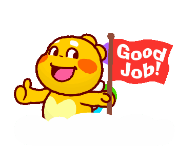Qoobee Agapi, the cheerful yellow character, gives a thumbs-up while holding a red flag that says 'Good Job!'