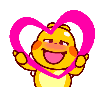 Adorable Qoobee character holding a large pink heart, expressing bashful love and affection with a sweet smile.