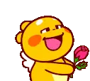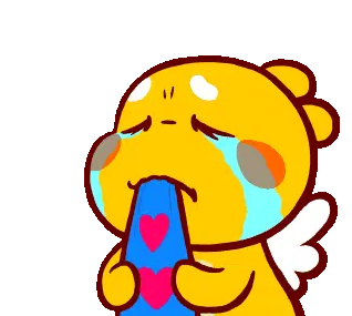 Qoobee Regina, the adorable yellow creature, looking thoughtful or bored, resting its head on its hand with a small exclamation mark.