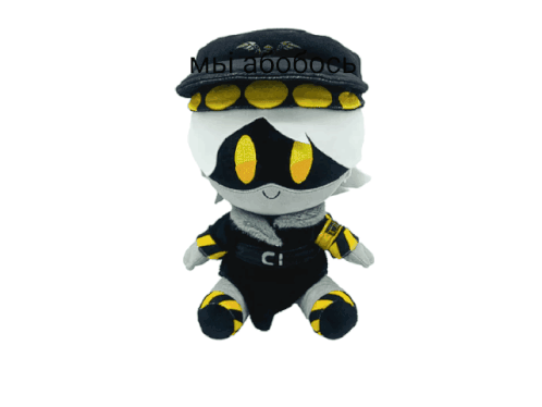 A cute Qq character plush toy, wearing a black pilot-style cap and a black and yellow uniform, sits upright.