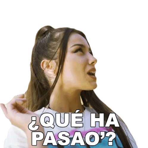 Shainny looks up with a questioning expression, asking the popular Spanish phrase '¿Qué ha pasao'?' (What happened?).