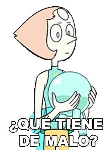 Pearl from Steven Universe asks "¿Qué tiene de malo?" (What's wrong with it?) with a concerned expression, holding a gem bubble.