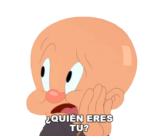Elmer Fudd from Looney Tunes looks confused, asking 'Who are you?' in this animated sticker.