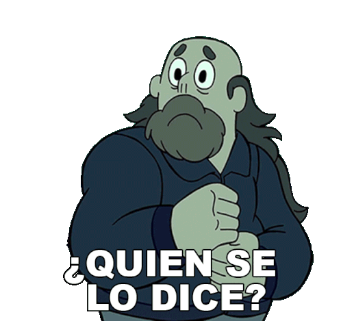 Greg Universe from Steven Universe looks anxious, asking 'Who tells him?' in a moment of shared apprehension.