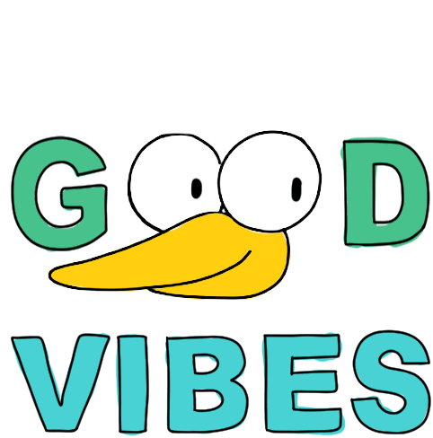 A cheerful animated sticker featuring a cartoon bird-like creature with big eyes and the text 'GOOD VIBES'.
