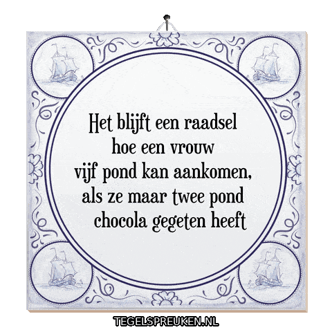 a sign that says het blijft een raadsel hoe een vrouw vijf pond kan aankomen