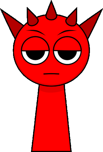 Raddy, a red cartoon character, features multiple horns and a distinctly serious, almost bored expression.