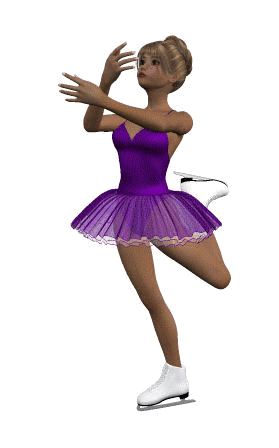 Animated figure in a purple tutu and white ice skates striking a graceful pose, ready to dance or skate.