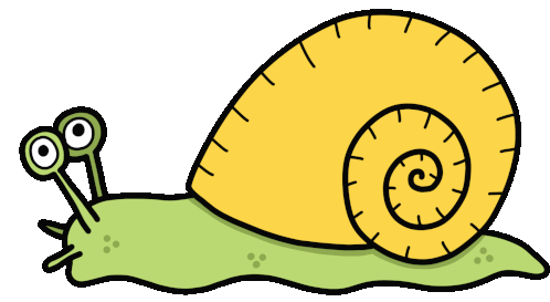 Raf Rafs' cute cartoon snail with a green body and yellow shell slowly moving.