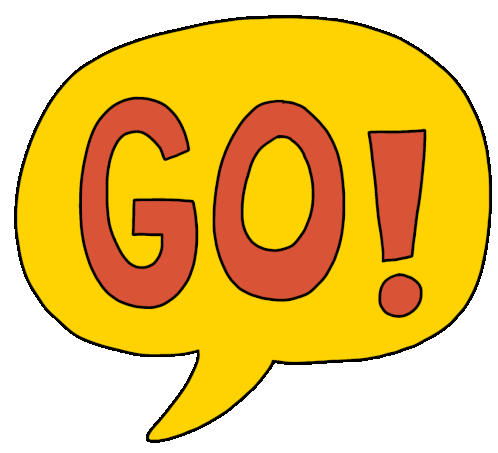 A vibrant yellow speech bubble with the bold red word 'GO!' and an exclamation mark, perfect for cheering and motivation by Raf Rafs.