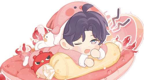 a cartoon of a boy sleeping on a pillow with a stuffed animal