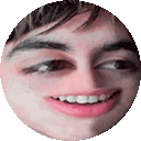 Rageylo Lolo's face, comically distorted and pixelated, with a wide, mischievous smile in a circular sticker.