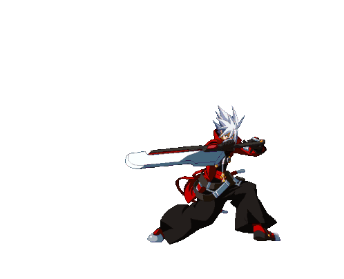 Ragna Bloodedge unleashes a powerful flame attack with his sword, a dynamic and fiery animated sticker.