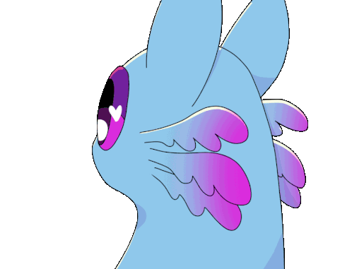 a cartoon drawing of a blue axolotl with pink eyes