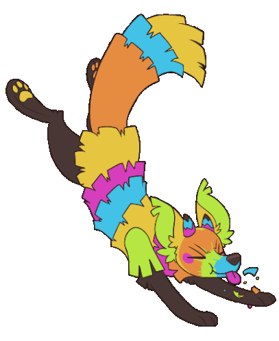 a cartoon drawing of a fox with a colorful tail