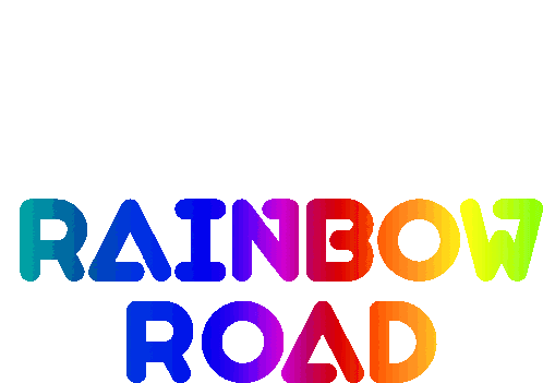 An animated sticker featuring the words 'Rainbow Road' displayed in vibrant, shifting rainbow colors.