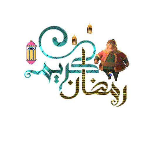 Fananees character wishing Ramadan Kareem with festive lanterns and sparkling Arabic calligraphy.