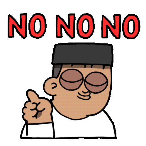 a cartoon of a man giving a thumbs up with the words no no no below him