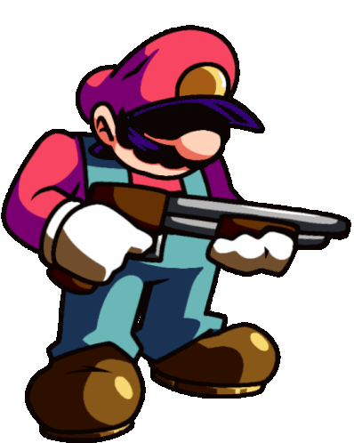 Rampage Mario in a down pose, holding a shotgun. This FNF-related sticker features the iconic character.
