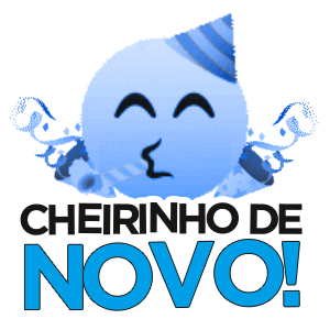 a blue face with a party hat blowing a kiss with the words cheirinho de novo below it