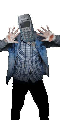 Randy Jade from Dialtown, wearing a plaid shirt and holding a classic Nokia phone in front of his face.