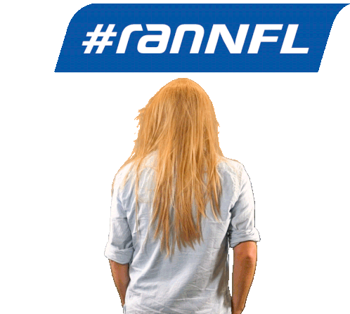 Carsten Spengemann playfully turns and smiles, showing off his long blonde wig in front of the #ranNFL logo.