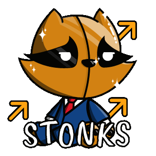 A cartoon raccoon in a suit and tie, representing the 'Stonks' meme, symbolizing financial gains and investment.