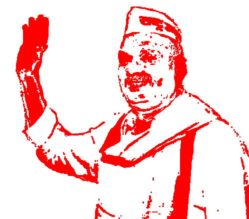 Babu Ram Pal, leader of the Rashtra Uday Party, is depicted in a green and white pixelated style, waving to supporters.