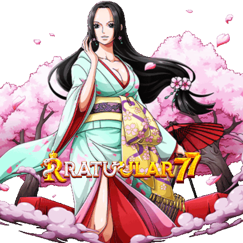 a woman in a kimono stands in front of a sign that says ratu ular 77