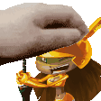 An animated sticker featuring Emma from Rayman Legends, being gently stroked on the head by a hand, possibly Ursula's.
