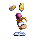Rayman, the limbless hero, spins in a pixelated cartwheel, with his head, hands, and feet rotating separately.