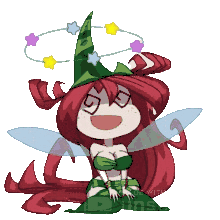 Rayman's red-haired fairy character, wearing a green hat and top, appears dazed with stars circling her head.