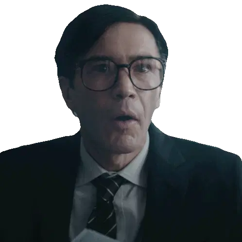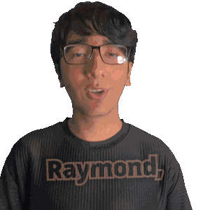 a man wearing glasses and a raymond shirt is making a funny face