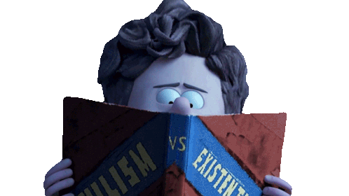 Orion from Netflix's 'Orion and the Dark' animated film is deeply engrossed in reading a book titled 'Nihilism vs Existentialism'.