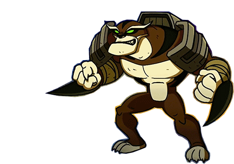 A Ben10 alien character, with sharp claws and a smirk, stands in a ready-to-fight stance.