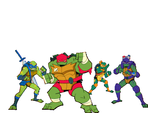 Donnie, Leo, Mikey, and Raph from Rise of the Teenage Mutant Ninja Turtles strike their iconic ready-to-fight stances.
