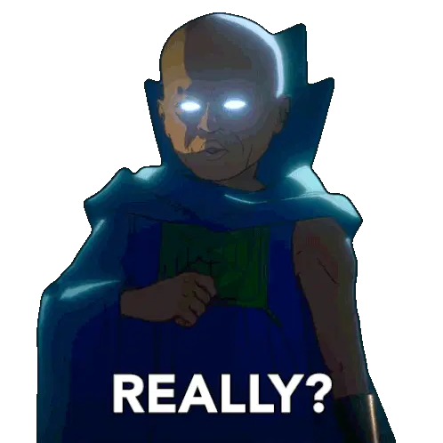 Steve Terreberry as Blippi with a quizzical expression, hands on hips, asking 'Really?' or 'Excuse me?'