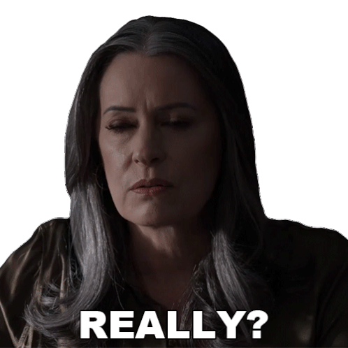 Emily Prentiss from Criminal Minds asks 'REALLY?' with a serious expression, then subtly tilts her head.